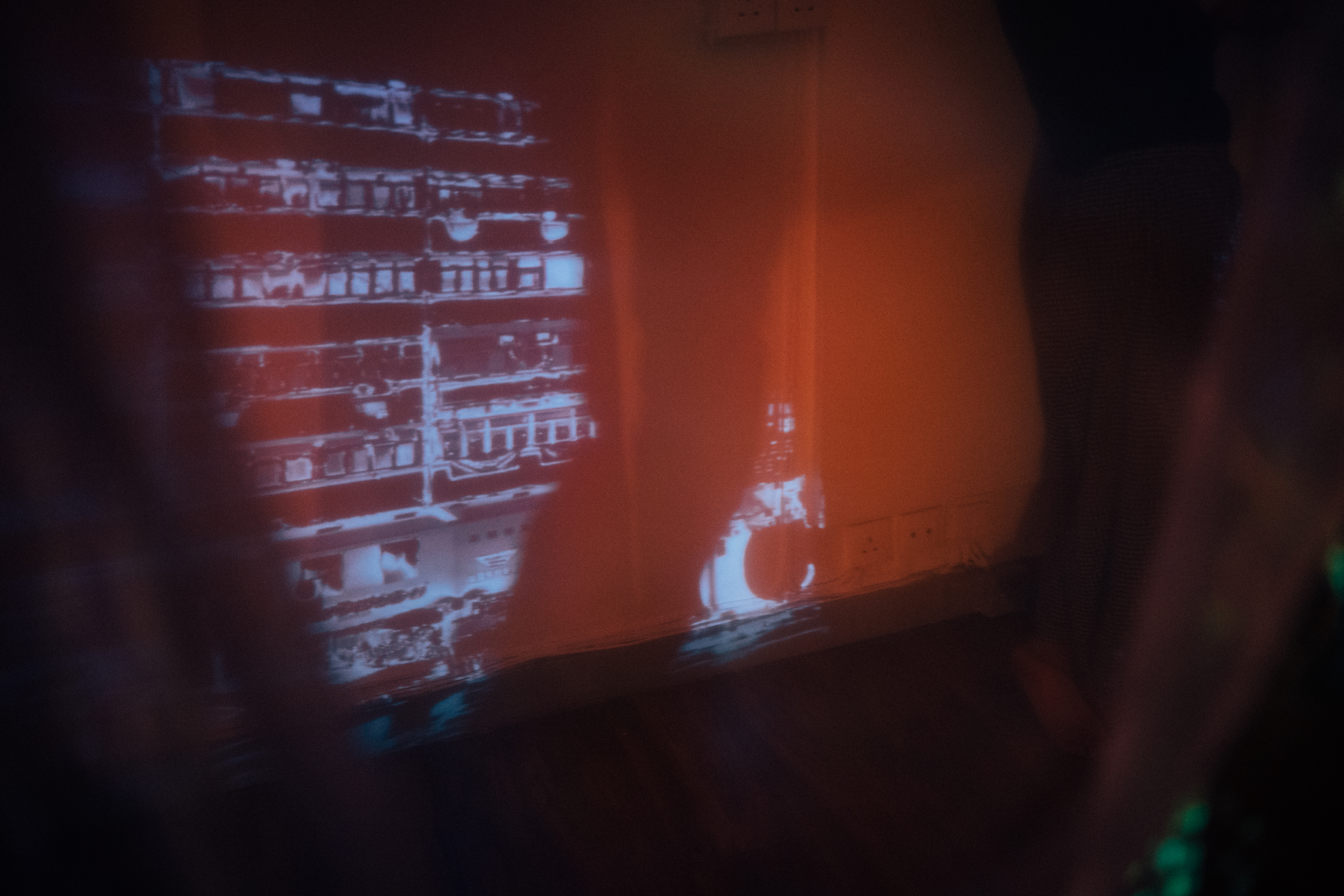“Boundary” is the theme of this performance, and we each have our way of interpreting it. The sound of materials colliding; walnuts falling out onto the ground; the interaction of the audience passing on words; a short video from Tai Po; Nanyin singing about the traces of time in the Fidelity Elevator; shuttling semi-transparent colored gauze; the historical narrative of the Wan Chai Big Bang; the sound of everyday objects interlacing; red candles, balanced on the head; the entanglement of a beat machine, newspaper and red wine; and the ignition of the green spirit’s vermouth... We thank you for coming to the official opening of the Furnace! We want to thank our friends for their trust and tacit understanding and look forward to the live performance and experimental creations that will come one after another.